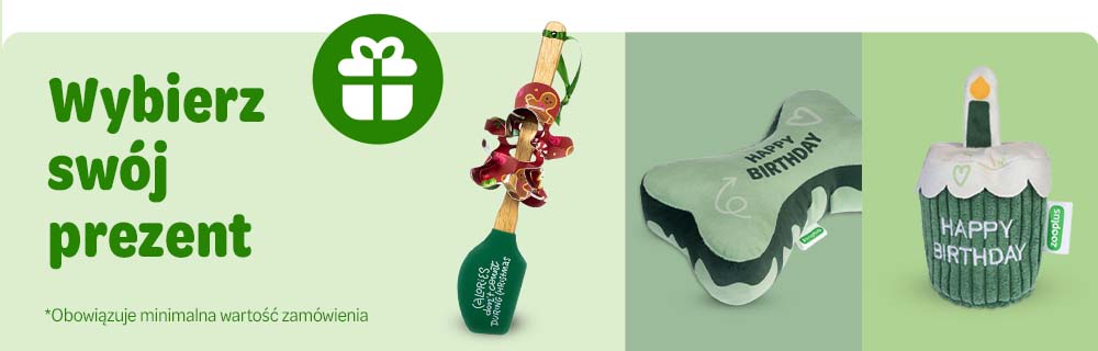 *Kod kuponu ważny jest w dniach 04.11- 10.11.2025 do godziny 23:59. Minimalna wartość zamówienia wynosi: 159 zł (wybierając jako gratis zabawkę dla kota bądź psa) lub 179 zł (wybierając jako gratis świąteczny zestaw). Kwota ta jest liczona po wszystkich rabatach i zniżkach. Promocja nie łączy się z innymi kodami. Kod można wykorzystać tylko raz na klienta. Zastrzegamy sobie prawo do wcześniejszego zakończenia akcji. Promocja ważna do wyczerpania zapasów.