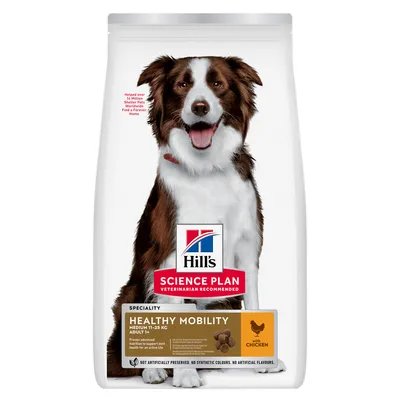 Hill's Science Plan Adult 1+ Healthy Mobility Medium (z kurczakiem) to karma pełnoporcjowa dla psów.